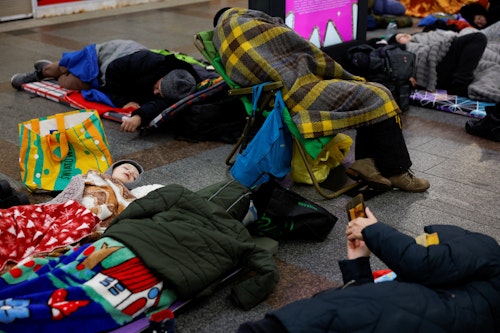 📷 En images – Des êtres se réfugient à cause une halte de R.E.R. avec que Kiev est frappé par des missiles russes